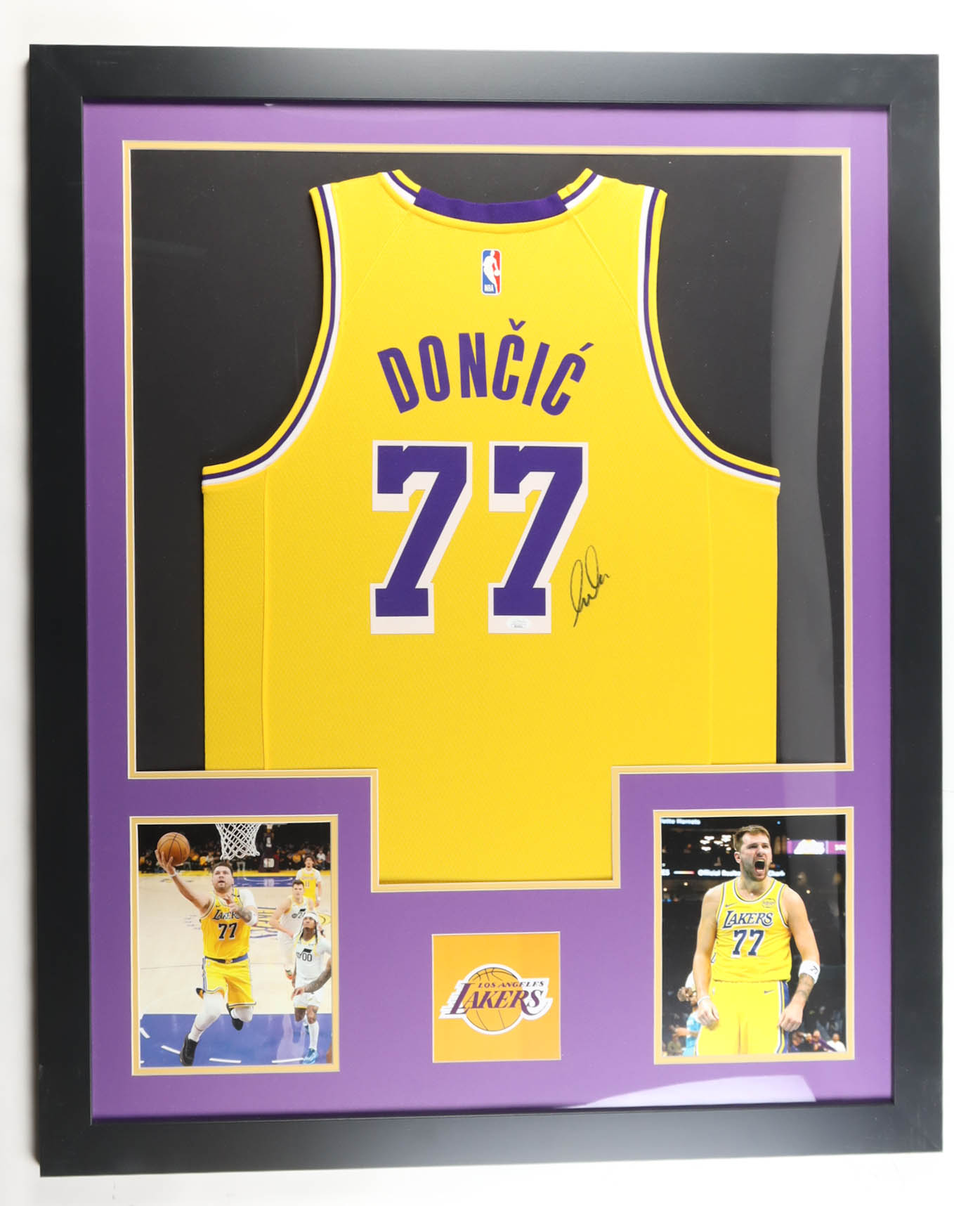 Custom frame measures approximately 35" x 43" in size and features a jersey that has been hand-signed by Luka Doncic. Refer to photos for more details.