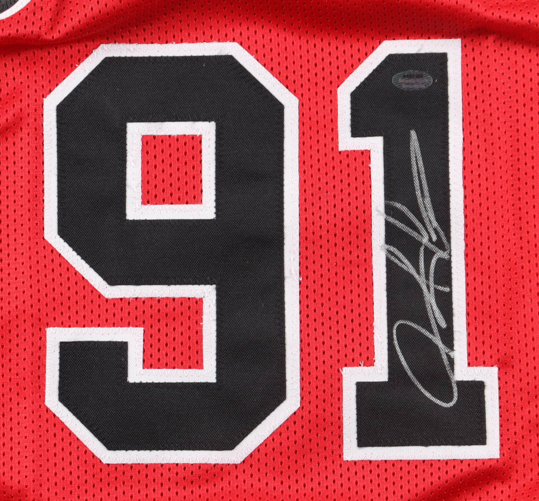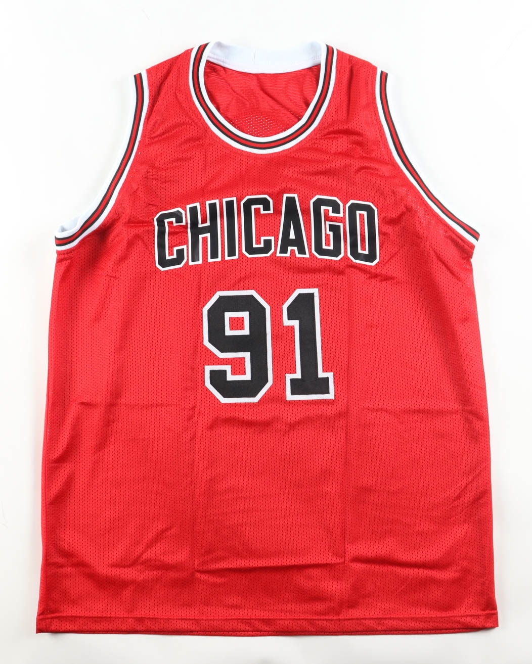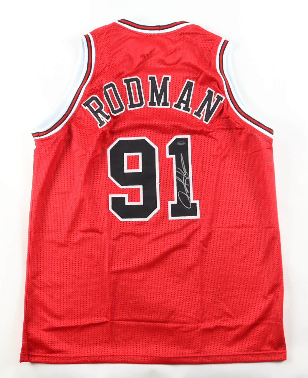 Custom jersey with everything sewn on, size XL. Hand-signed by Dennis Rodman (HOF).