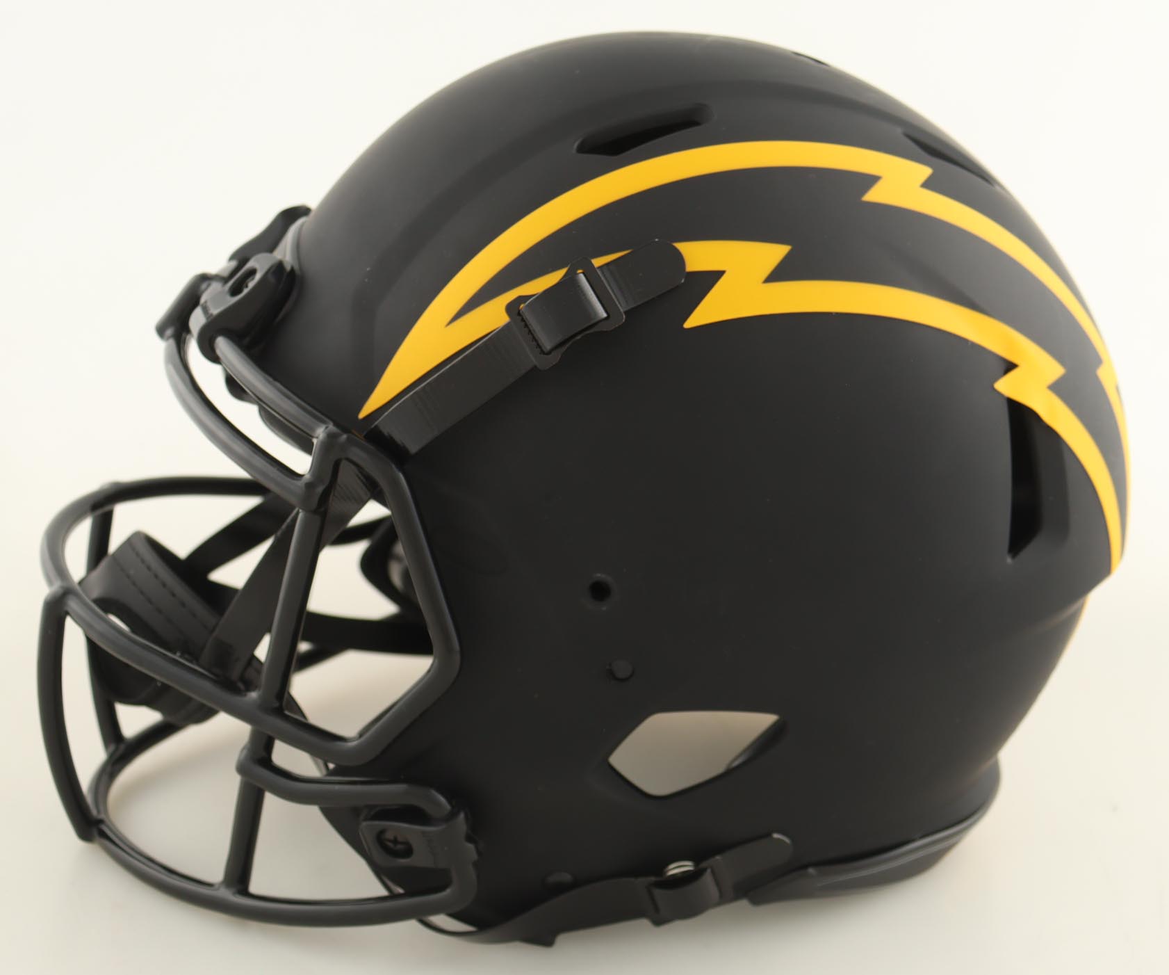 Riddell Los Angeles Chargers full-size authentic on-field eclipse alternate speed helmet. Hand-signed by Rodney Harrison.