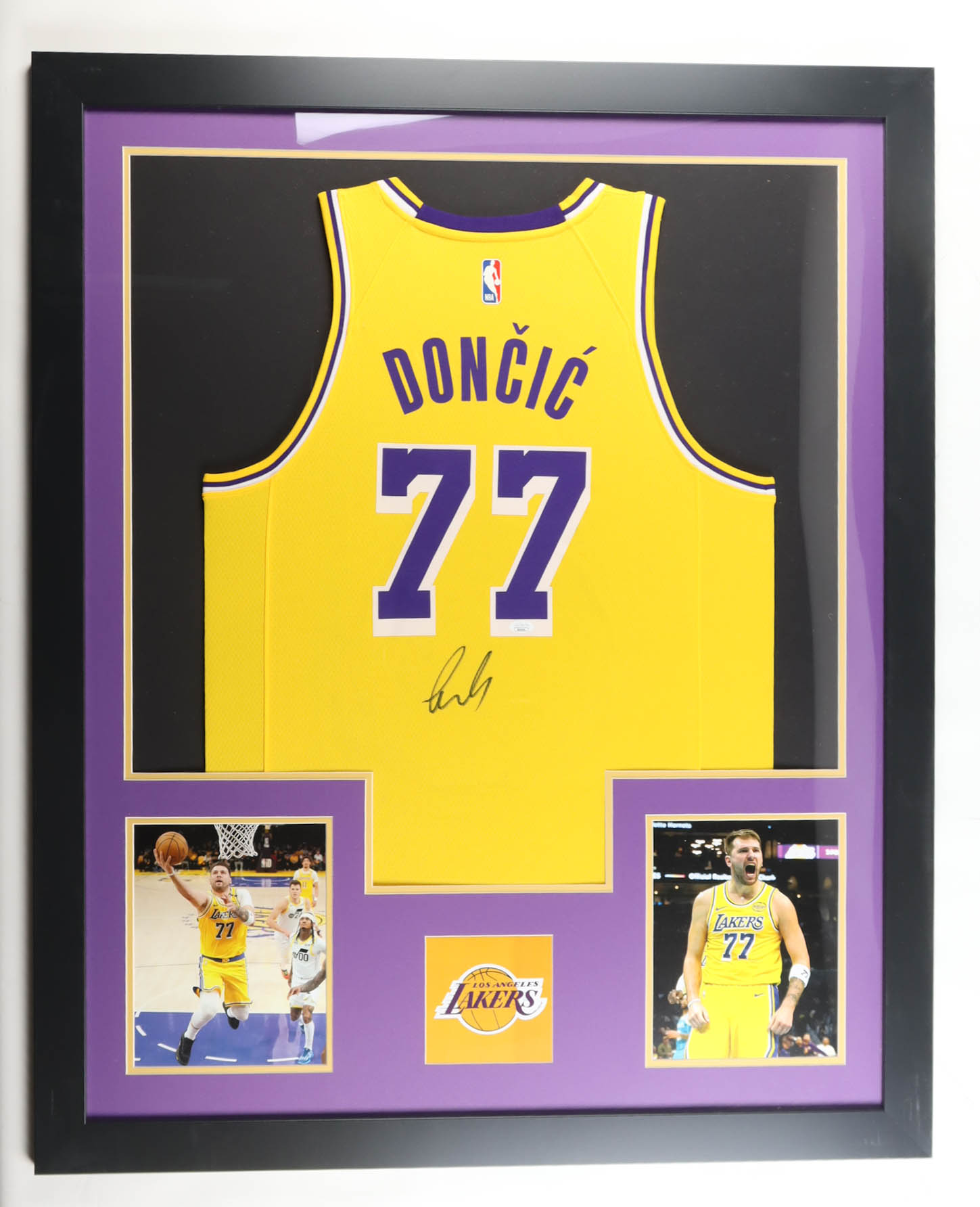 Custom frame measures approximately 35" x 43" in size and features a jersey that has been hand-signed by Luka Doncic. Refer to photos for more details.