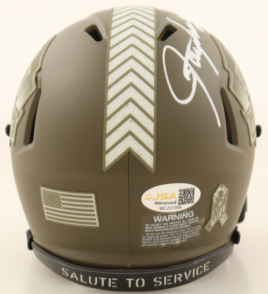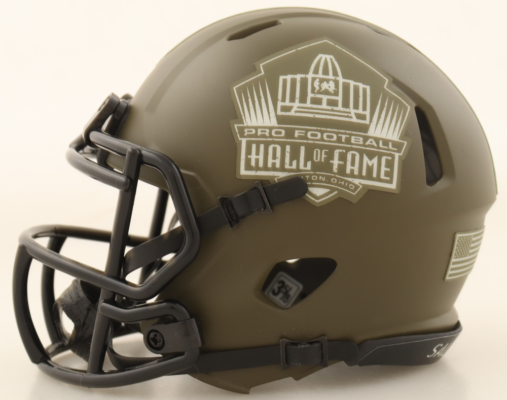 Riddell Pro Football Hall of Fame salute to service speed mini helmet. Hand-signed by Lawrence Taylor (New York Giants, HOF).