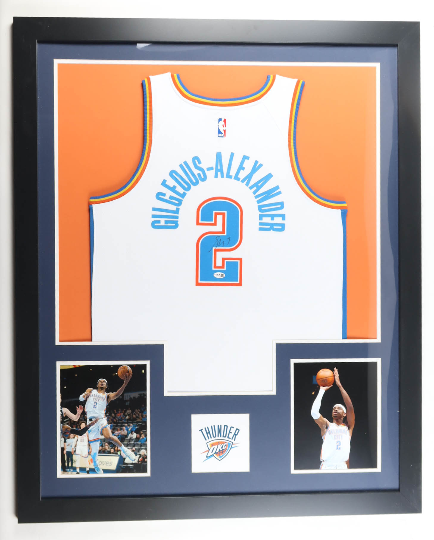 Custom frame measures approximately 35" x 43" in size and features a jersey that has been hand-signed by Shai Gilgeous-Alexander. Refer to photos for more details.