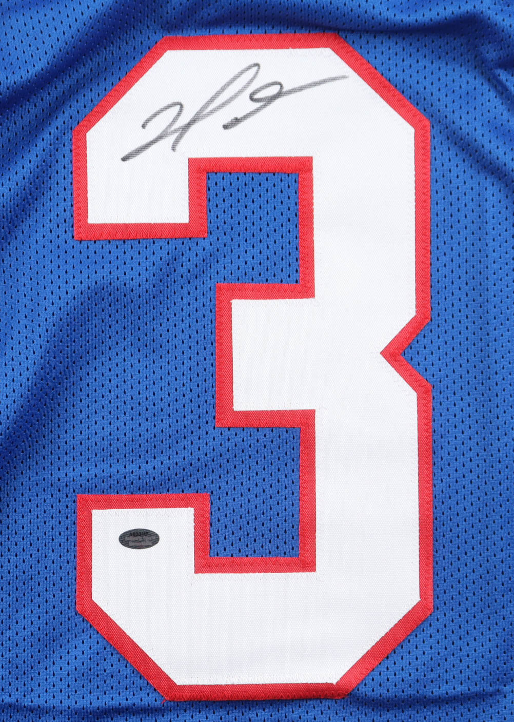 Custom jersey with everything sewn on, size XL. Hand-signed by Damar Hamlin.
