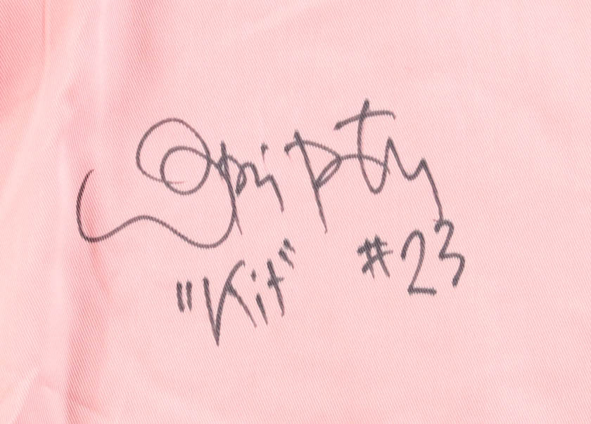 "A League of Their Own" women's baseball jersey has been hand-signed and inscribed by Lori Petty.
