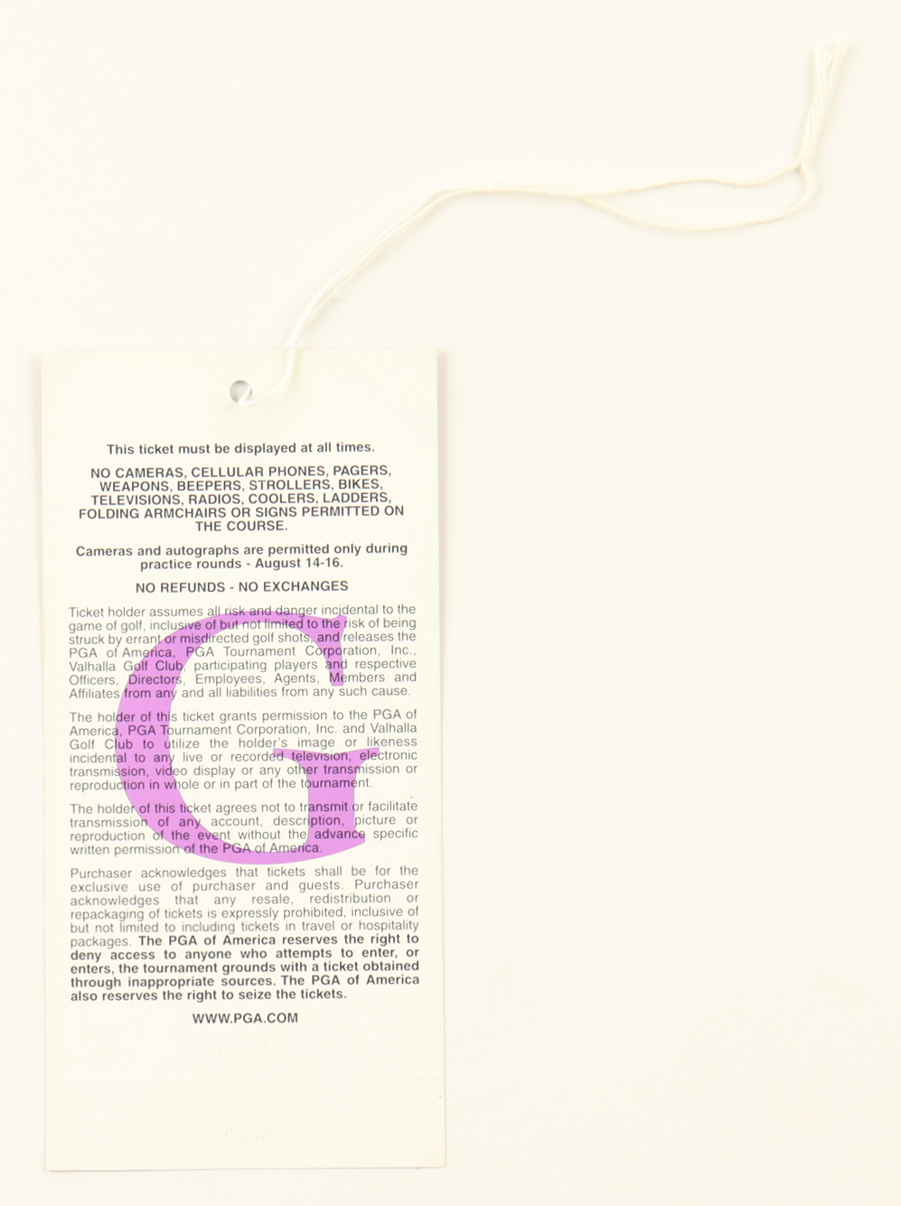 1982 Vintage PGA At Valhalla Ticket Lanyard with Leroy Neiman Tiger Woods Art