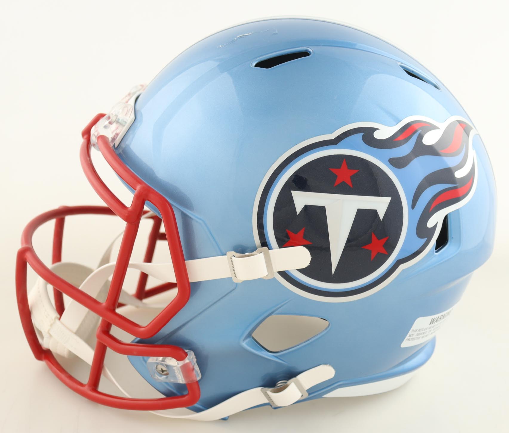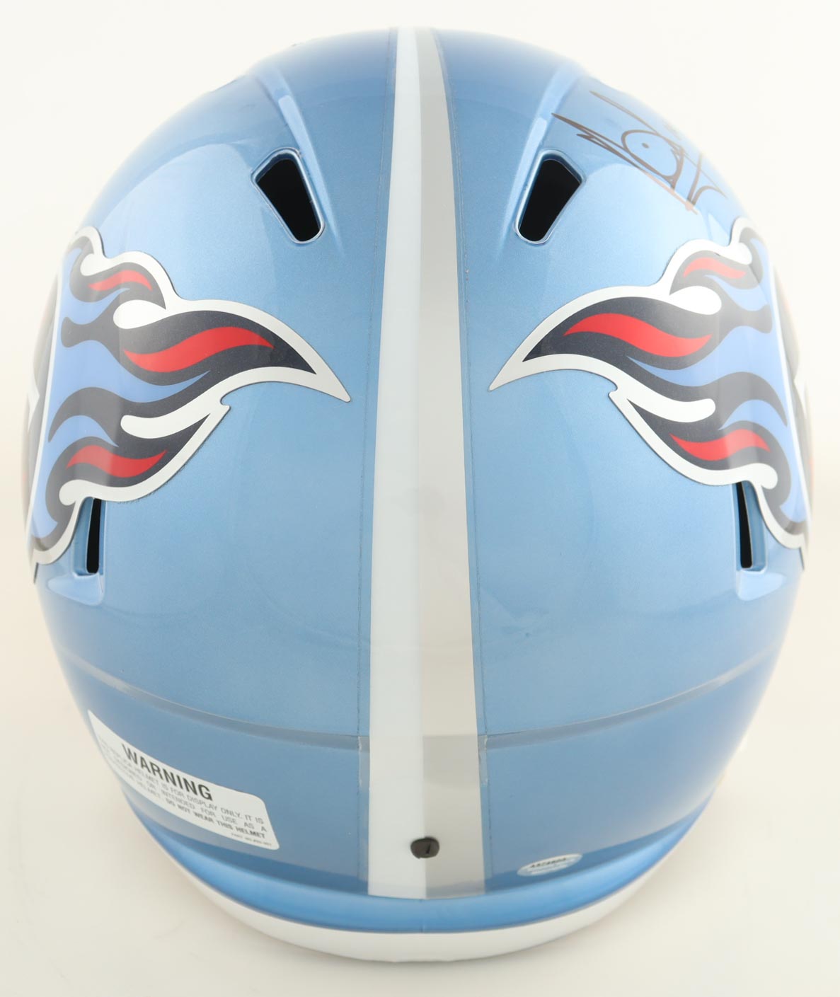 Riddell Tennessee Titans full size replica flash alternate speed helmet. Hand signed and inscribed by Vince Young.