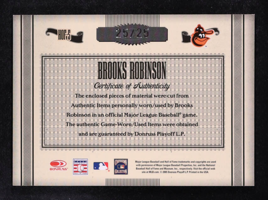 Brooks Robinson 2005 Timeless Treasures HOF Materials Signature Combos #HOF5 Bat-Jersey #25/25