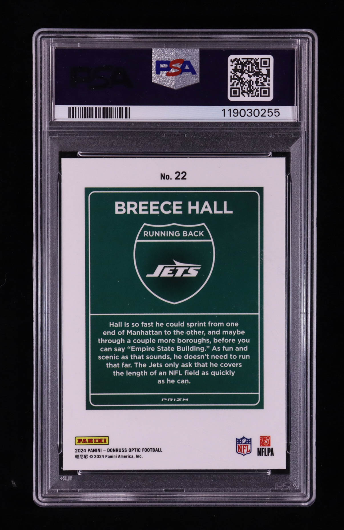 Breece Hall 2024 Donruss Optic Downtown #22 (PSA 9)