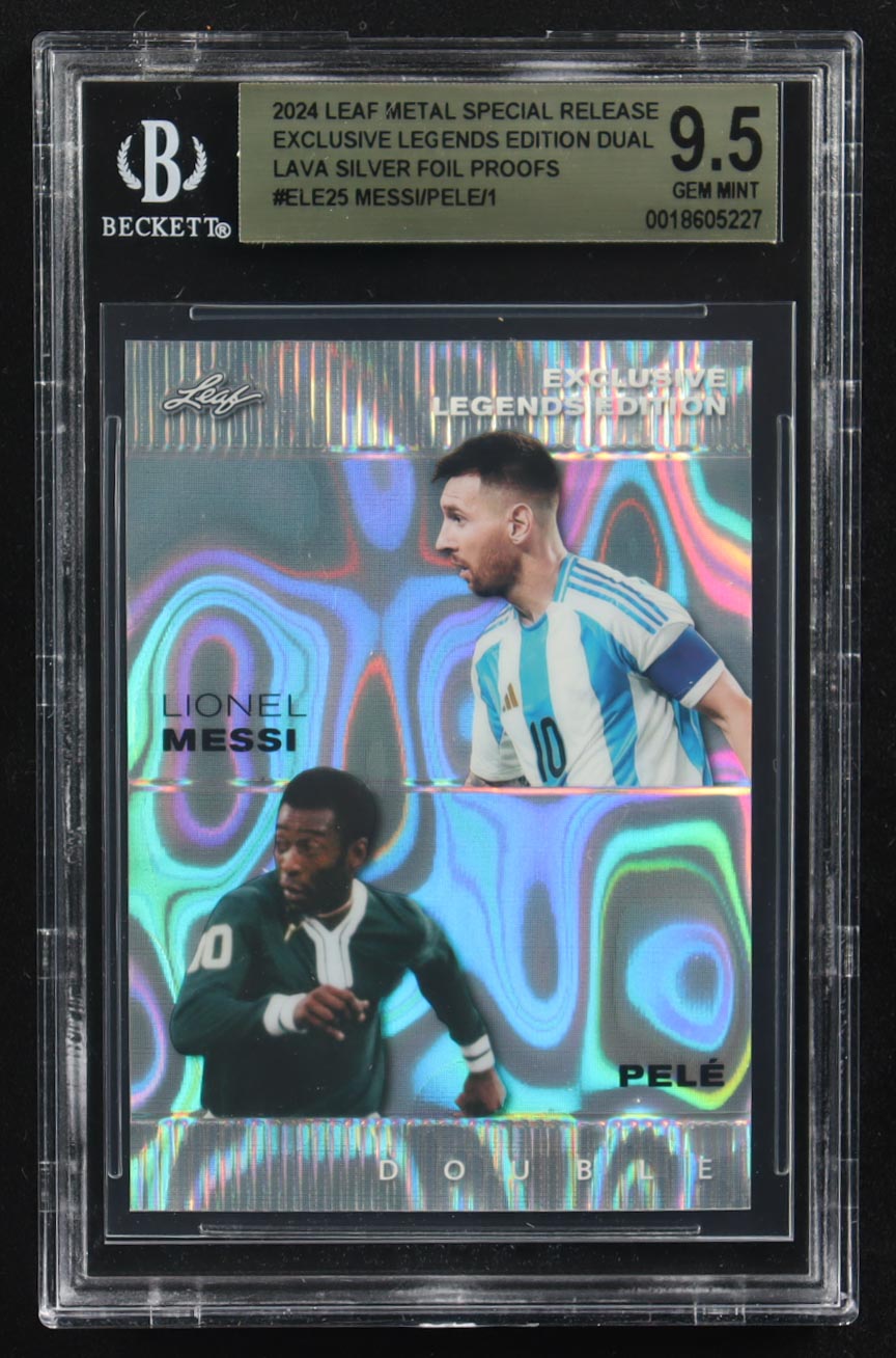 Lionel Messi / Pele 2024 Leaf Metal Special Release Exclusive Legends Ed. Dual Lava Silver Foil Proofs #ELE25 (BGS 9.5)