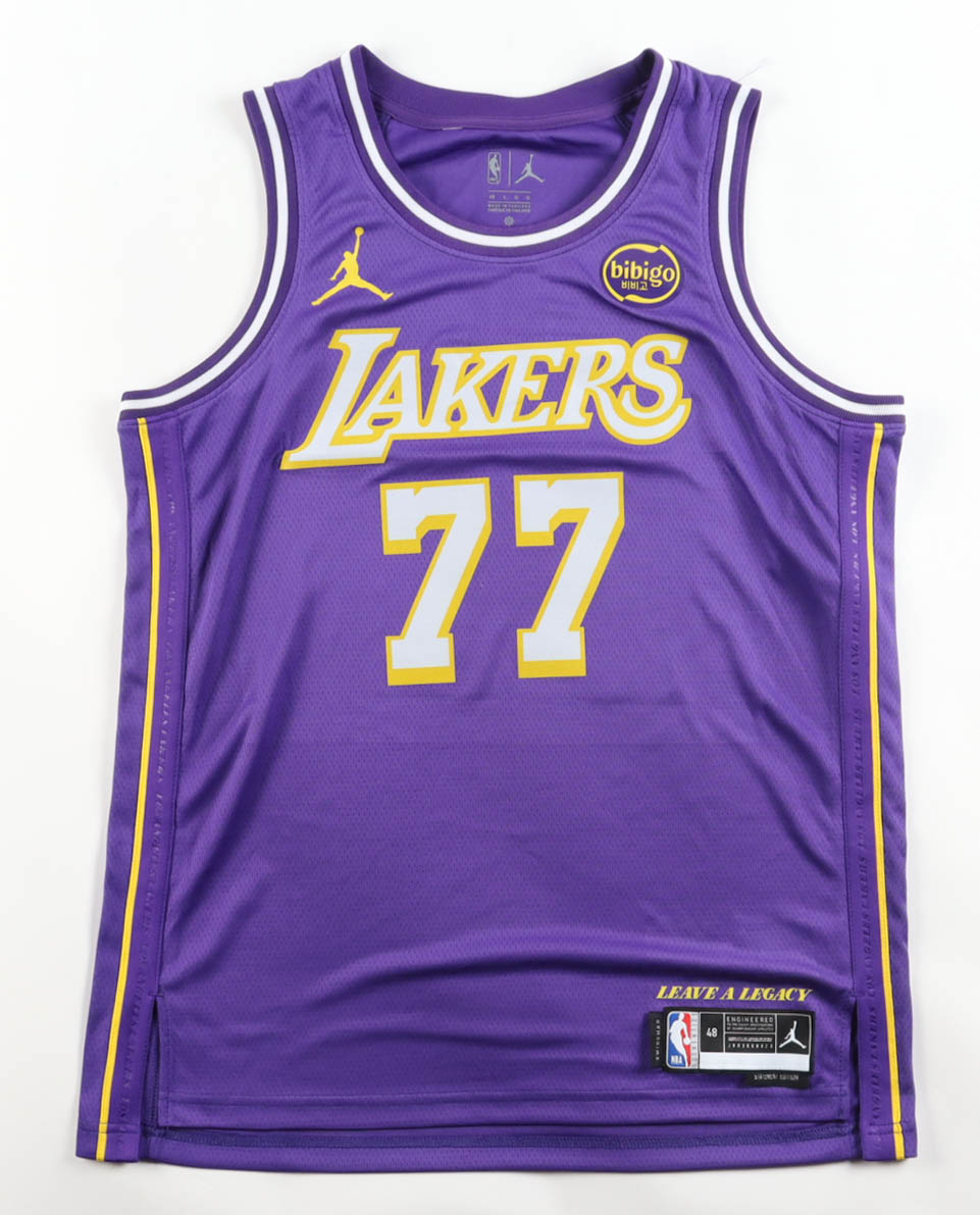 Jordan authentic jersey with everything pressed on, size 48. Hand-signed by Luka Doncic (Los Angeles Lakers).