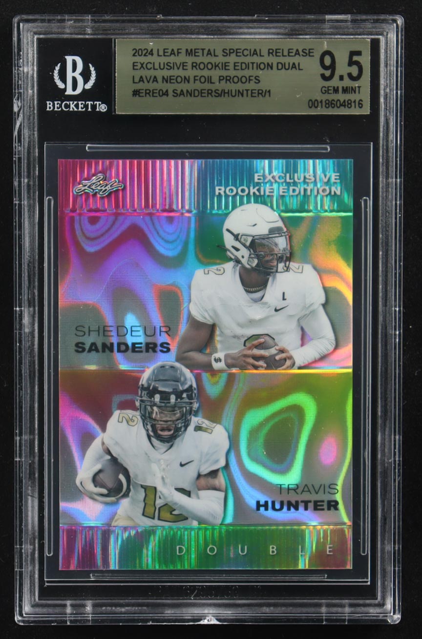 Shedeur Sanders / Travis Hunter 2024 Leaf Metal Special Release Exclusive Rookie Ed. Dual Lava Neon Foil Proofs #ERE04 RC #1/1 (BGS 9.5)
