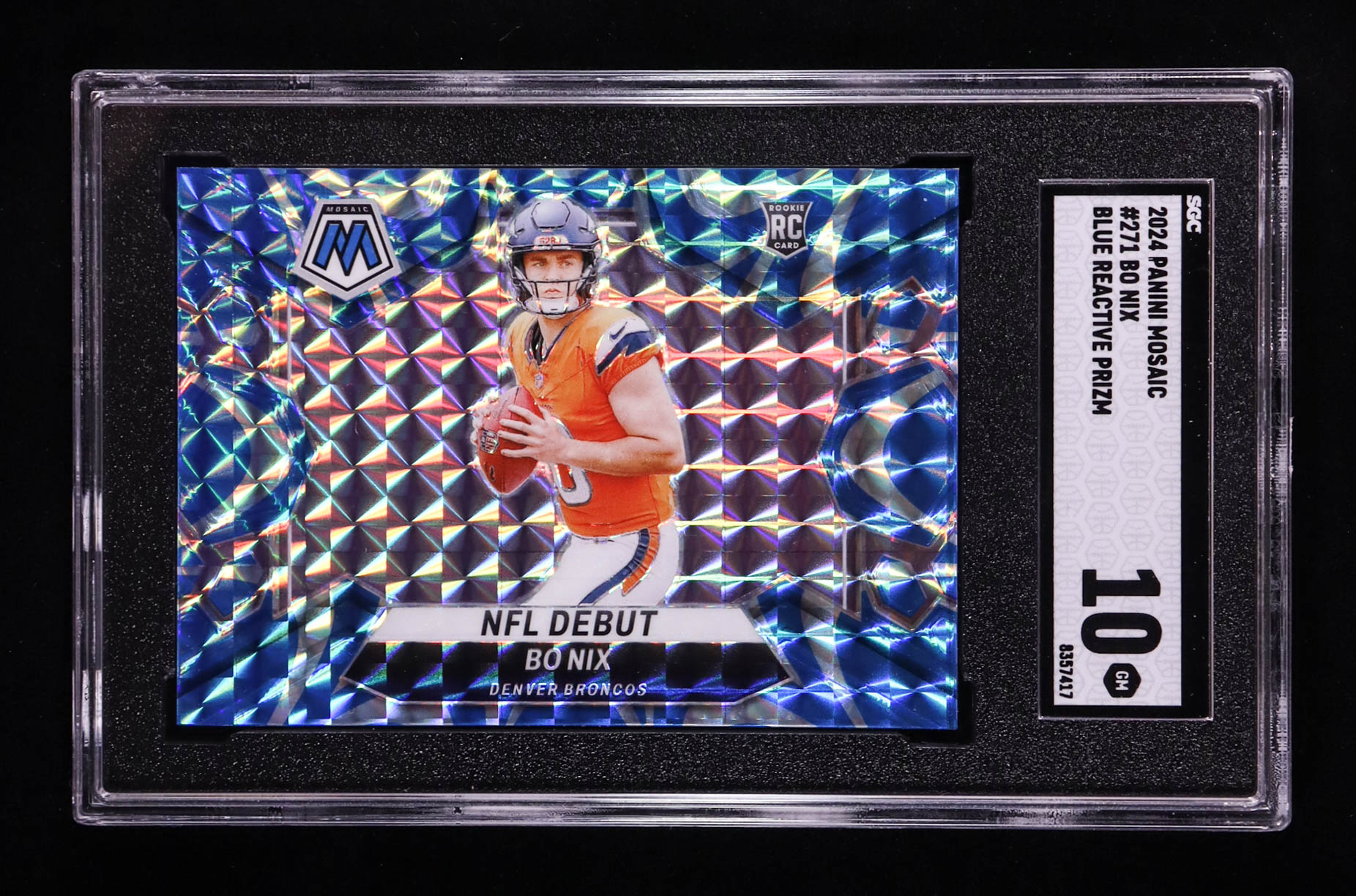 Bo Nix 2024 Panini Mosaic Mosaic Reactive Blue #271 DEB RC (SGC 10)