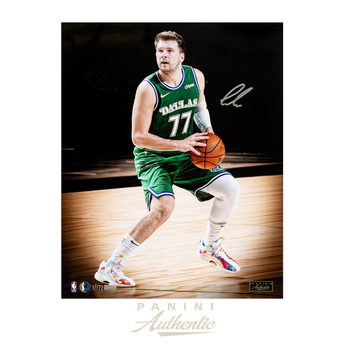 Photo measures 16" x 20" in size and has been hand-signed by Luka Doncic (Dallas Mavericks). This item is limited edition and has been numbered #/177.