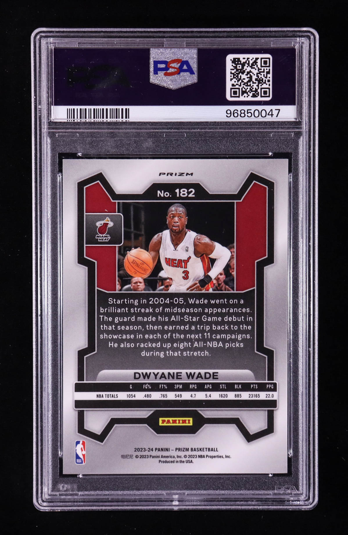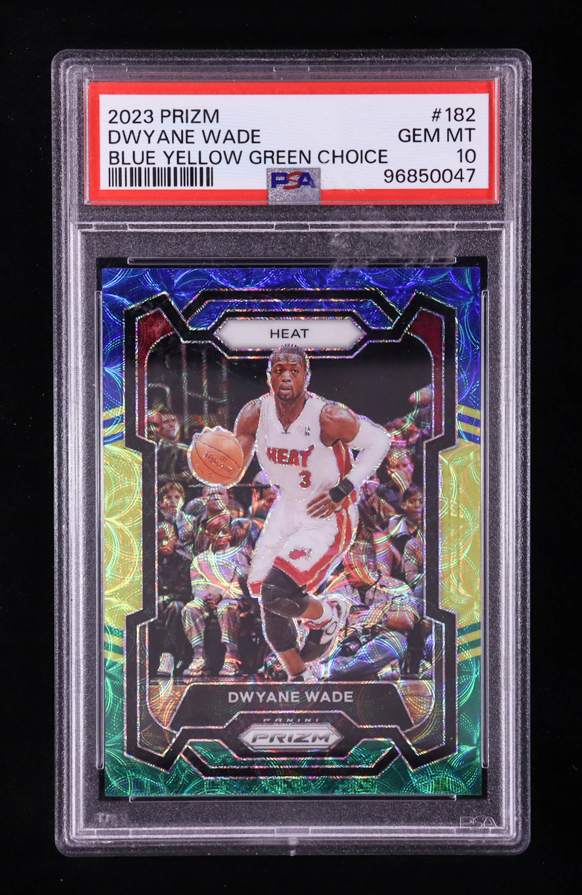 Dwyane Wade 2023-24 Panini Prizm Prizms Choice Blue Yellow and Green #182 (PSA 10)