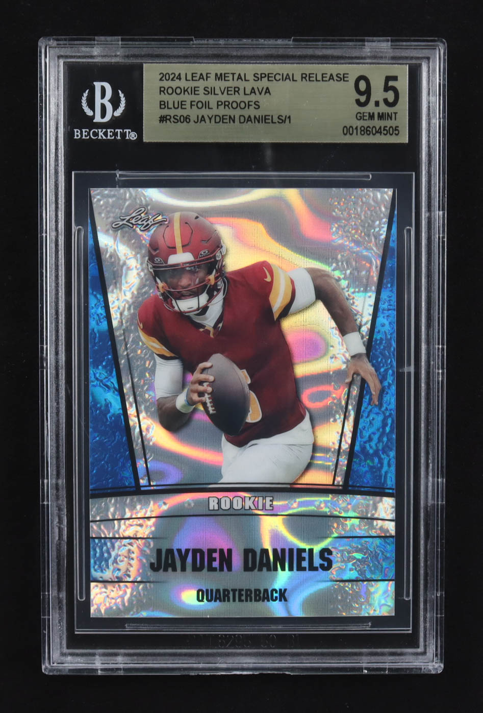 Jayden Daniels 2024 Leaf Metal Special Release Rookie Silver Lava Blue Foil Proofs #RS06 RC (BGS 9.5)