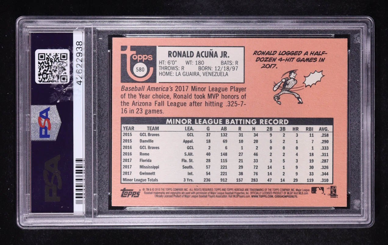 Ronald Acuna Jr. 2018 Topps Heritage #580 RC (PSA 10)