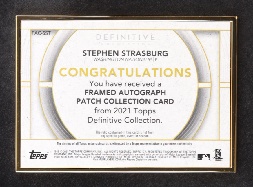 Stephen Strasburg 2021 Topps Definitive Collection Framed Autograph Patches Purple #FACSST #02/10