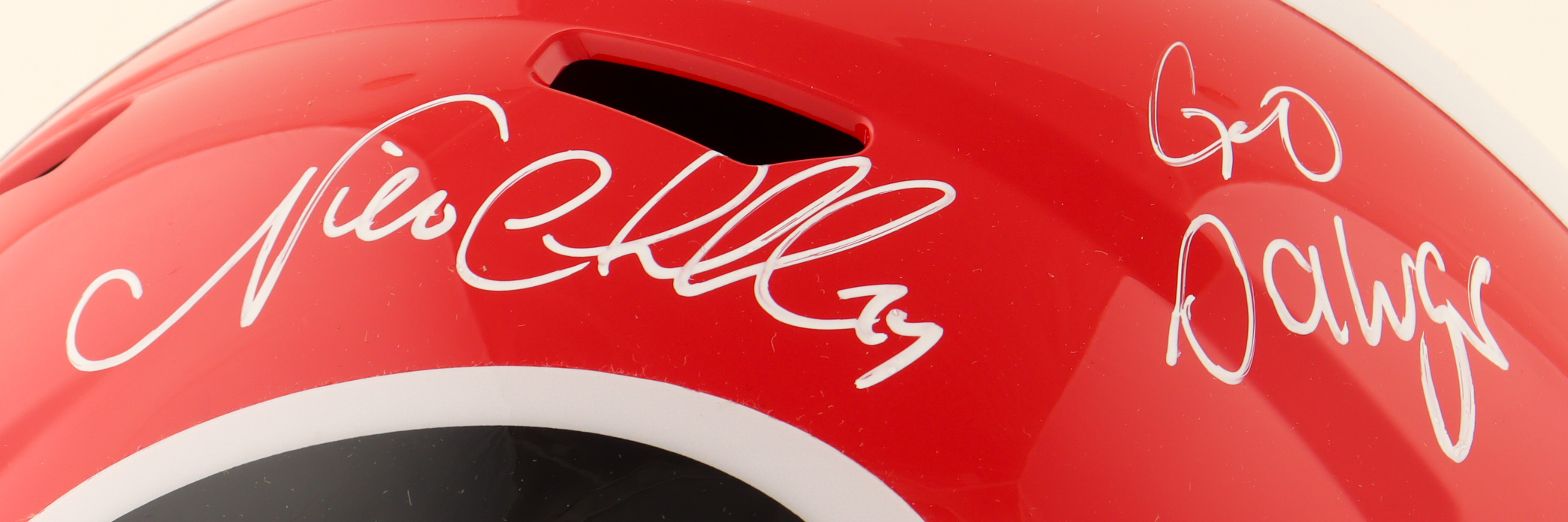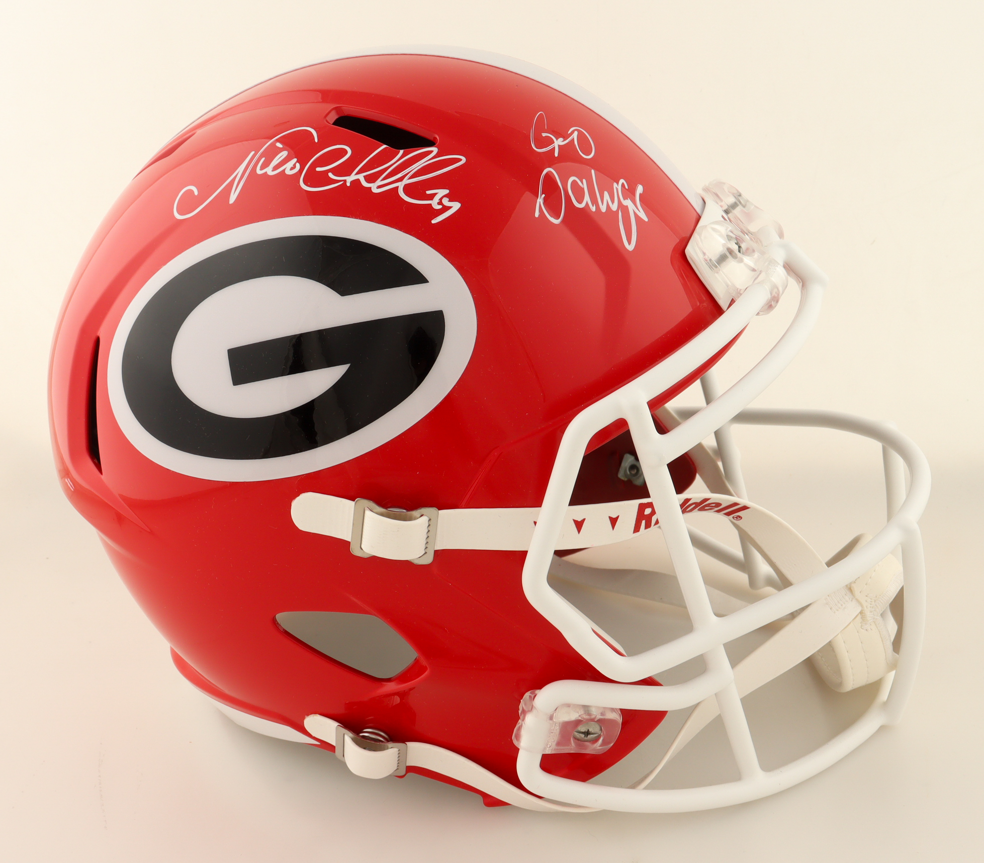 Riddell Georgia Bulldogs Full-Size Replica Speed Helmet. Hand-signed and inscribed by Nick Chubb.