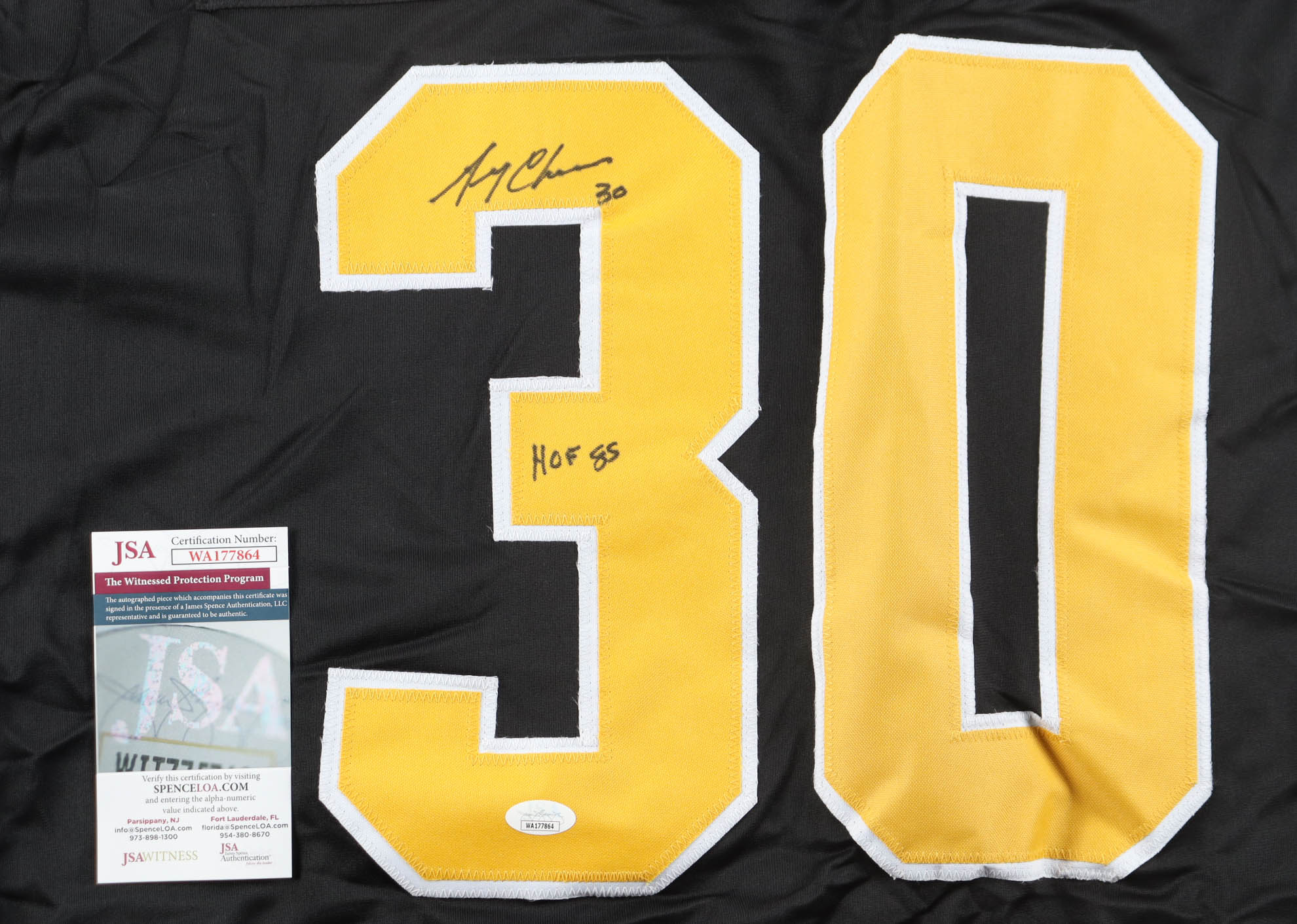 Gerry Cheevers Signed Jersey Inscribed "HOF 85" (JSA)