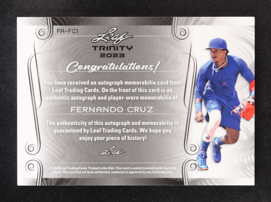 Fernando Cruz 2023 Leaf Trinity Patch Autographs Black Variation Purple #PAFC1 #1/1