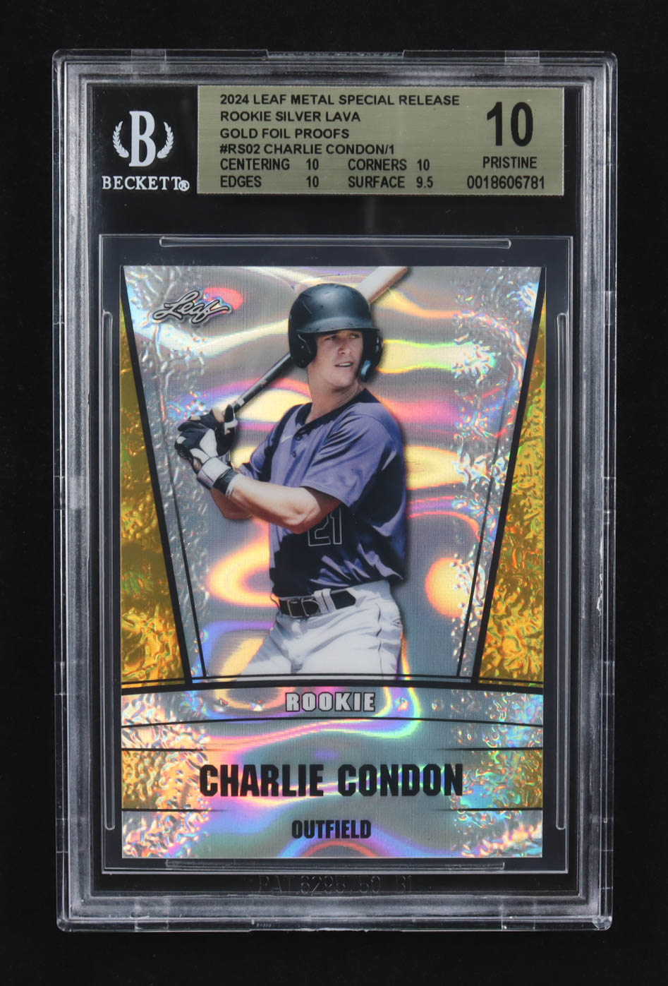 Charlie Condon 2024 Leaf Metal Special Release Rookie Silver Lava Gold Foil Proofs #RS02 RC (BGS 10)