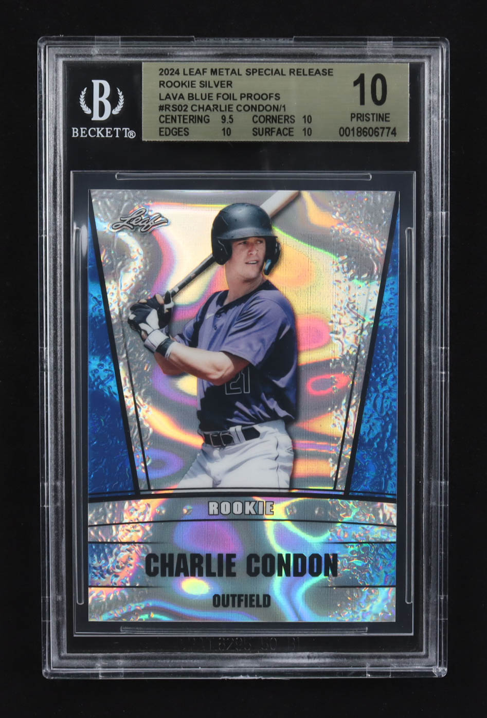 Charlie Condon 2024 Leaf Metal Special Release Rookie Silver Lava Blue Foil Proofs #RS02 RC (BGS 10)