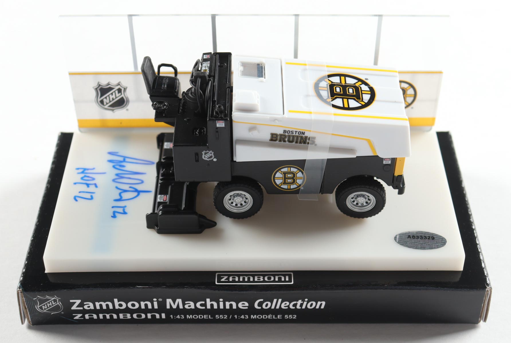 NHL Boston Bruins premium die-cast zamboni machine has been hand-signed and inscribed on the base by Adam Oates (HOF).