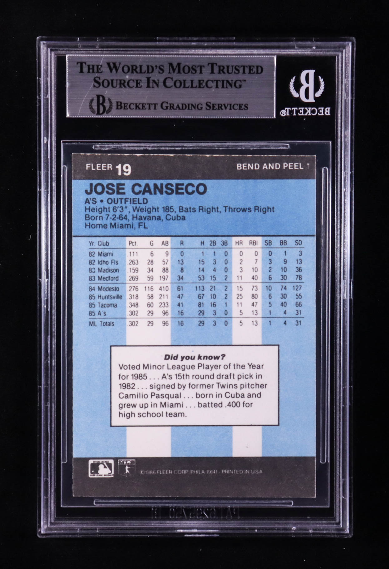Jose Canseco Signed 1986 Fleer Star Stickers #19 (BGS)