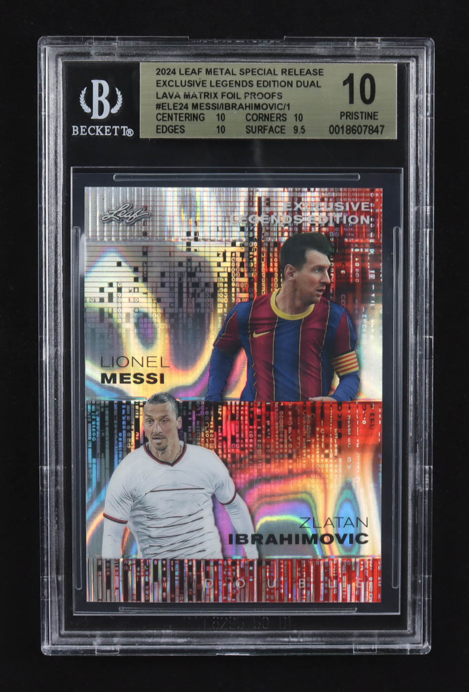 Lionel Messi / Zlatan Ibrahimovic 2024 Leaf Metal Special Release Exclusive Legends Ed. Dual Lava Matrix Foil Proofs #ELE24 (BGS 10)