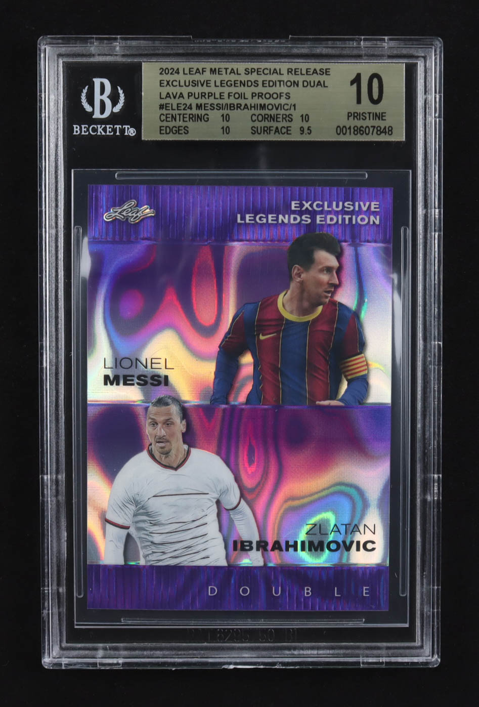 Lionel Messi / Zlatan Ibrahimovic 2024 Leaf Metal Special Release Exclusive Legends Ed. Dual Lava Purple Foil Proofs #ELE24 (BGS 10)
