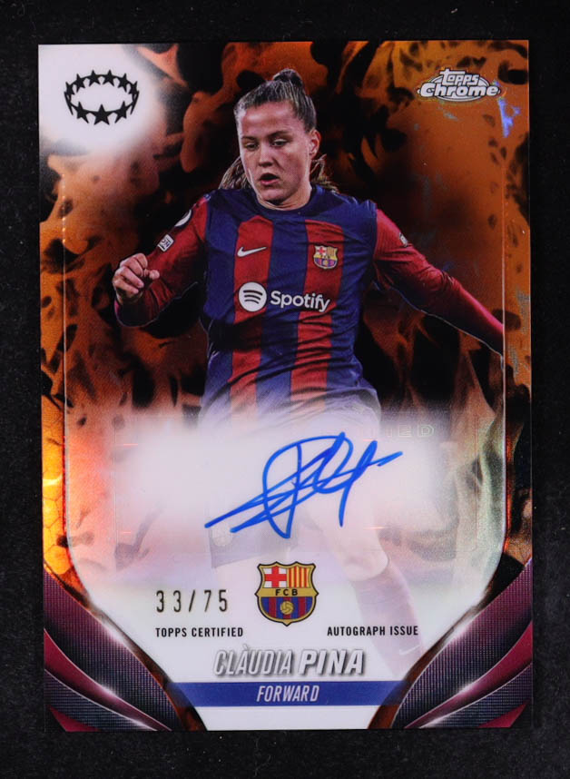 Claudia Pina 2023-24 Topps Chrome UEFA Women's Champions League Autographs Inferno Refractors #ACP #33/75