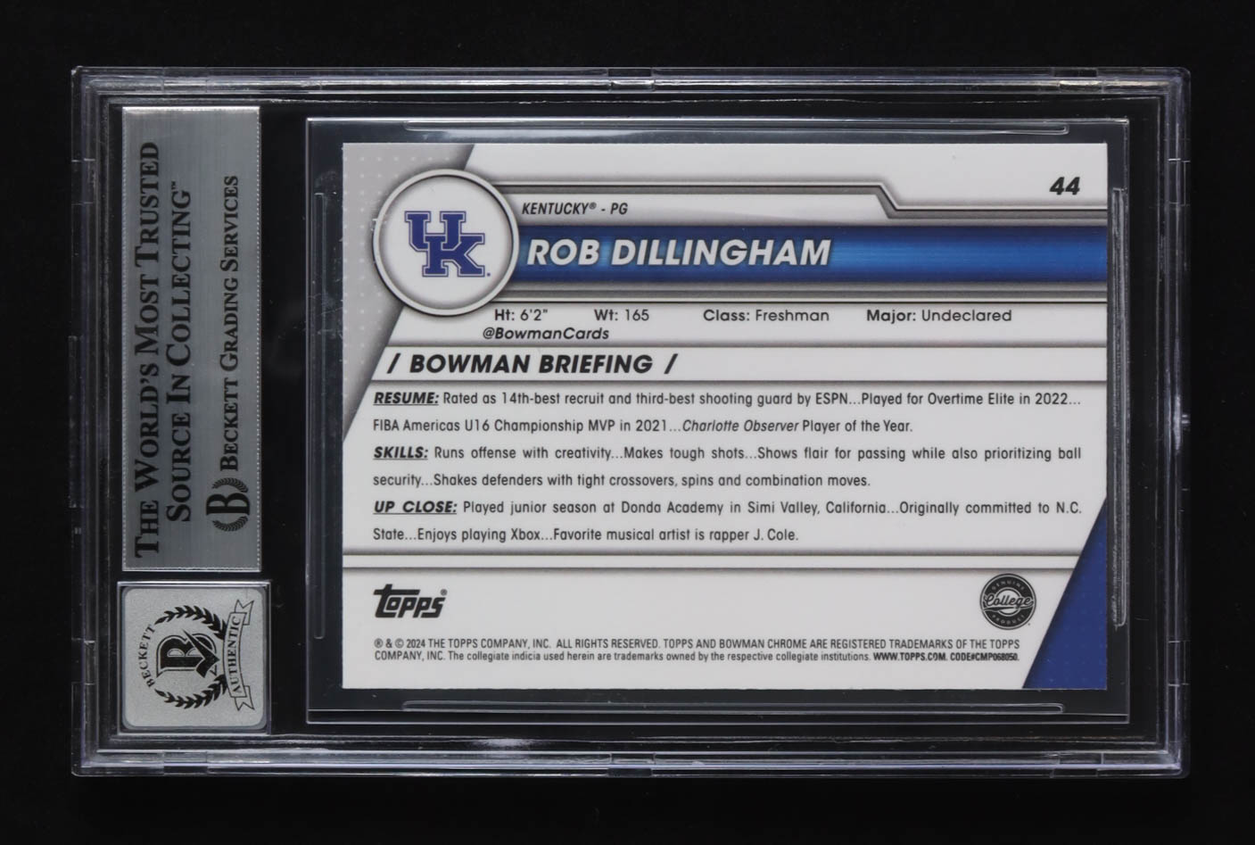 Rob Dillingham Signed 2023-24 Bowman Chrome Univ. #44 RC (BGS | Autograph Graded BGS 10)