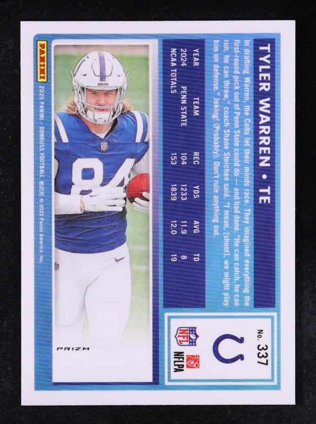 Tyler Warren 2025 Donruss Optic Rated Rookies Preview Red Pandora #337 RR RC