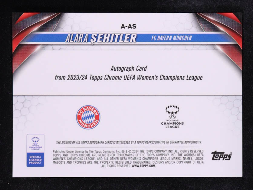 Alara Sehitler 2023-24 Topps Chrome UEFA Women's Champions League Autographs Rose Gold Mojo Refractors #AAS #51/125 RC