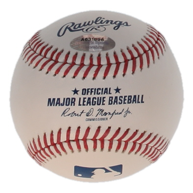 Rawlings Official Major League Baseball. Hand-signed and inscribed by Bitty Schram (Evelyn Gardner). Please note, the inscription has been slightly smudged and there are minor stains throughout the baseball.