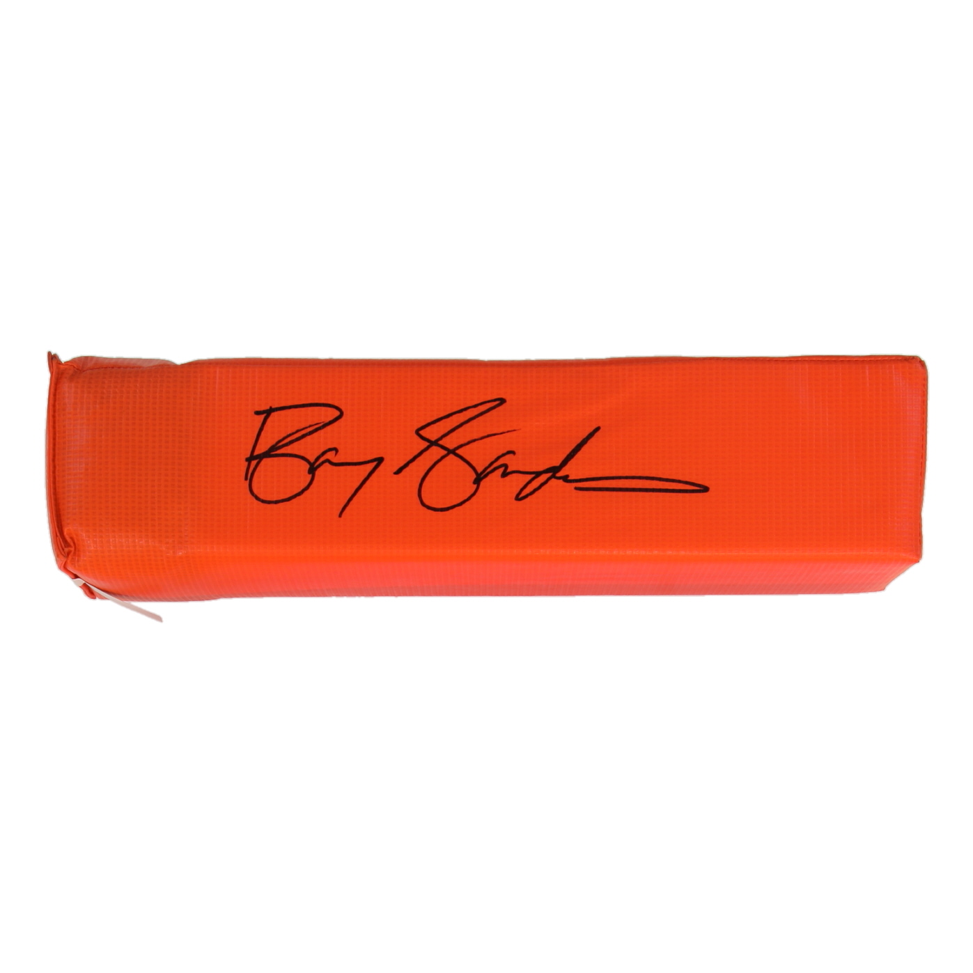 Football end zone pylon has been hand-signed by Barry Sanders (Detroit Lions, HOF).