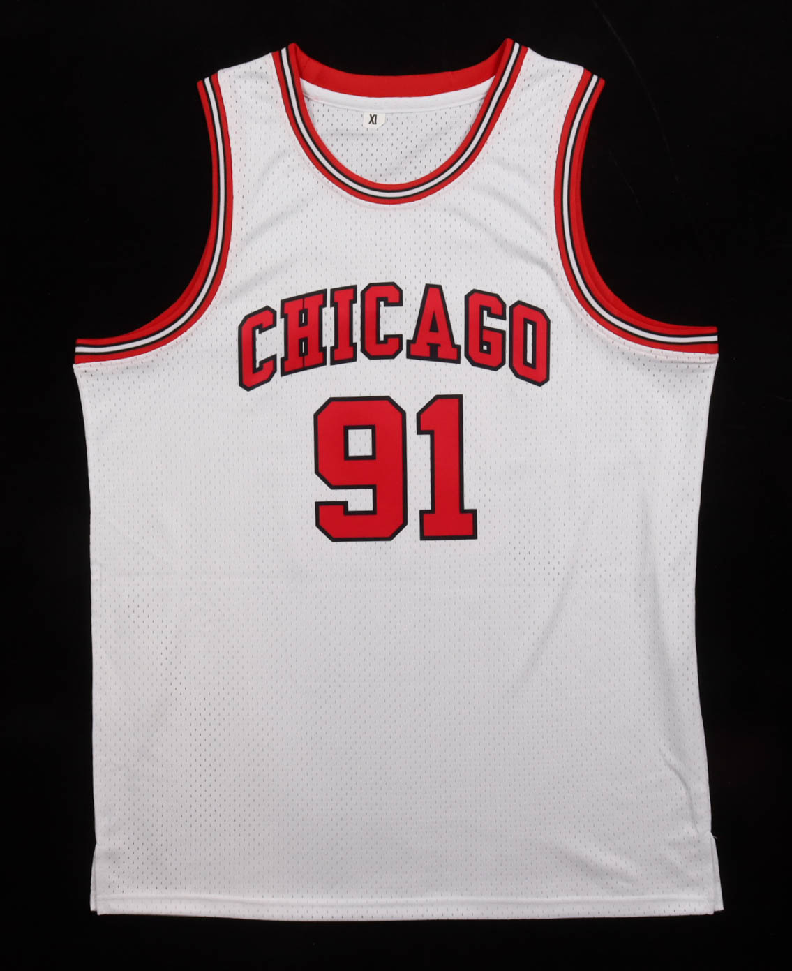 Custom jersey with everything sewn on, size XL. Hand-signed by Dennis Rodman (HOF).