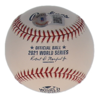 Dylan Lee Signed Official 2021 World Series Logo Baseball Inscribed "WS Champs" (Beckett)