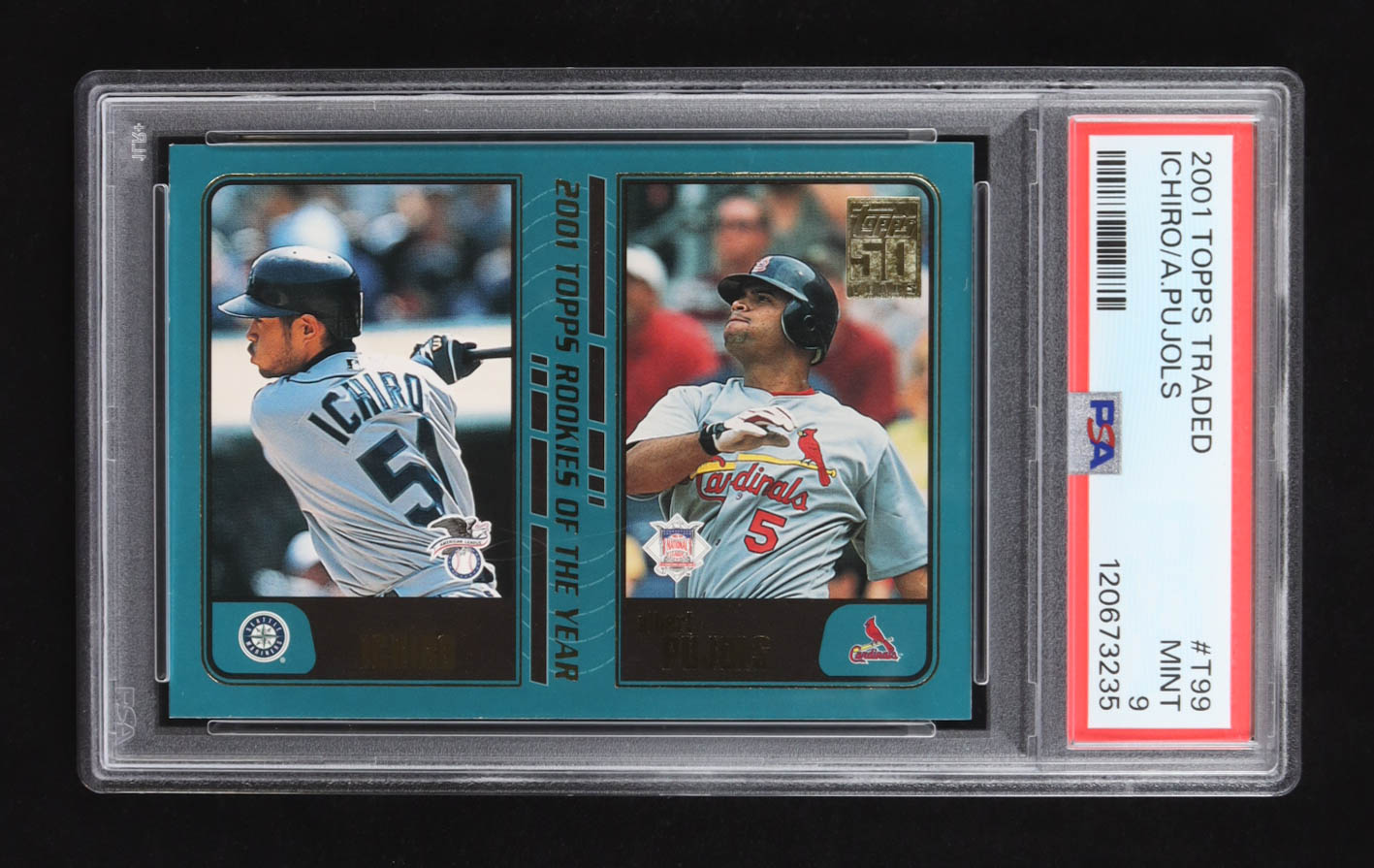 Ichiro Suzuki / Albert Pujols 2001 Topps Traded #T99 ROY RC (PSA 9)