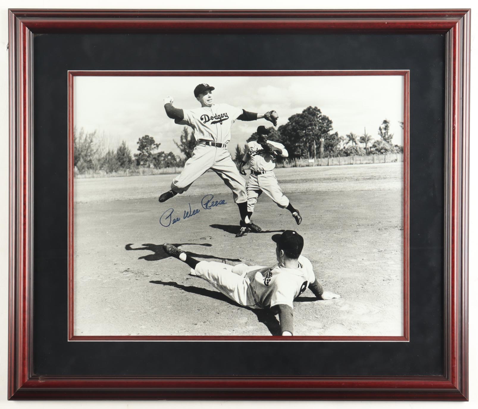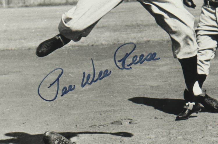 Custom frame measures approximately 22" x 26" in size. Photograph is hand-signed by Pee Wee Reese (Brooklyn Dodgers).