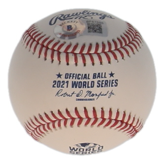 Rawlings Official 2021 World Series logo baseball has been hand-signed and inscribed by Ben Ingram.