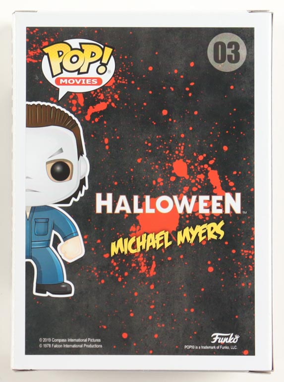 Vinyl figure measures approximately 4" tall and the packaging has been hand-signed & inscribed by Nick Castle (Michael Myers).