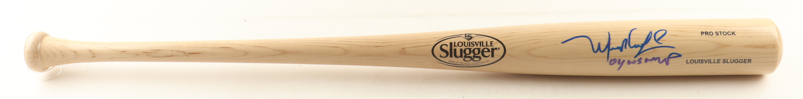 Louisville Slugger Pro Stock baseball bat has been hand-signed and inscribed by Manny Ramirez (Boston Red Sox). Please note, the signature ink has bled.
