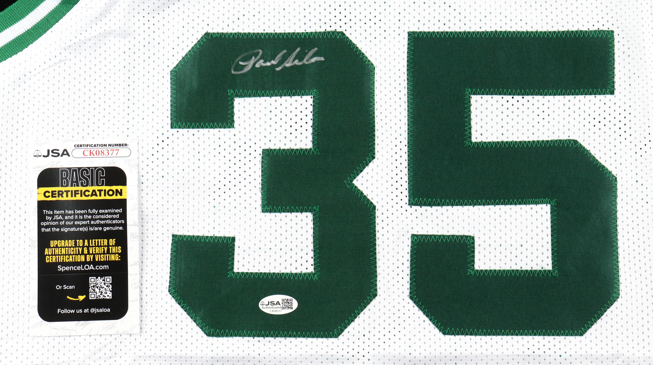 Custom jersey with everything sewn on, size XL. Hand-signed by Paul Silas.