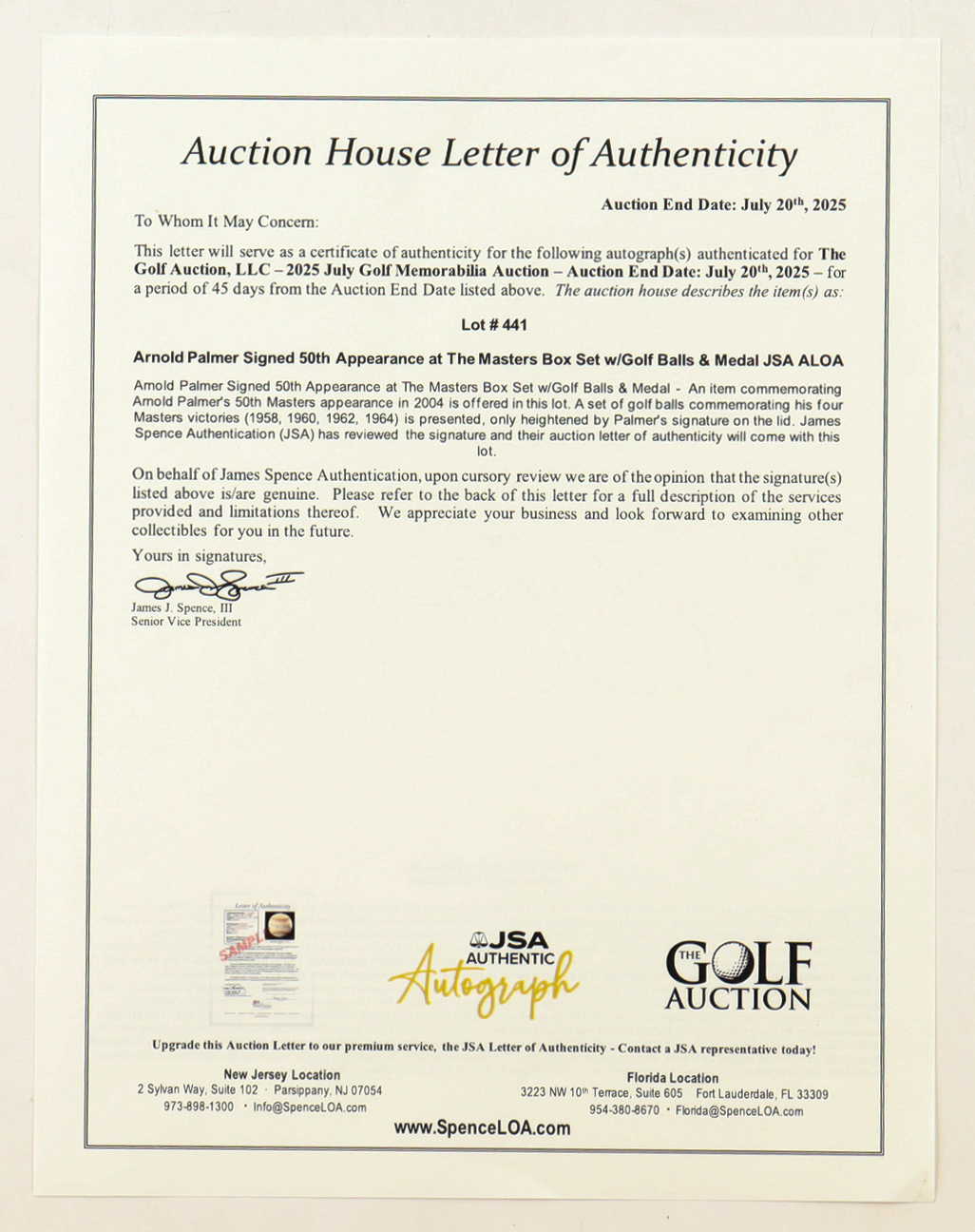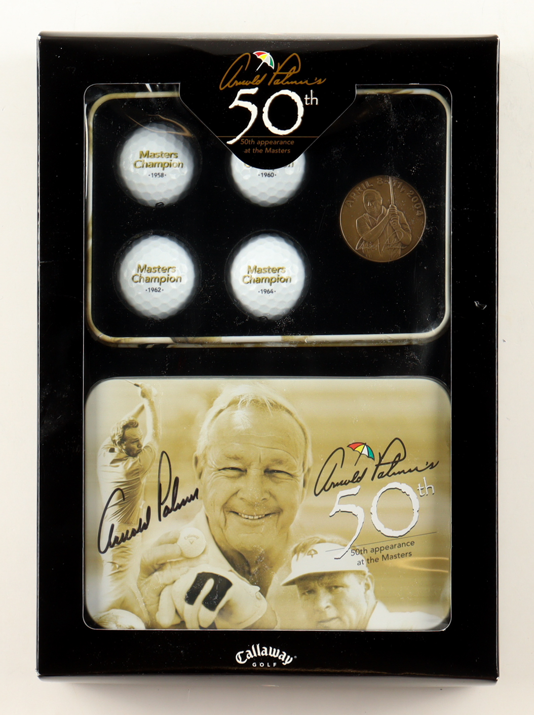 Arnold Palmer Signed 2004 "50th Appearance at the Masters" Box Set with Golf Balls & Medal (JSA)