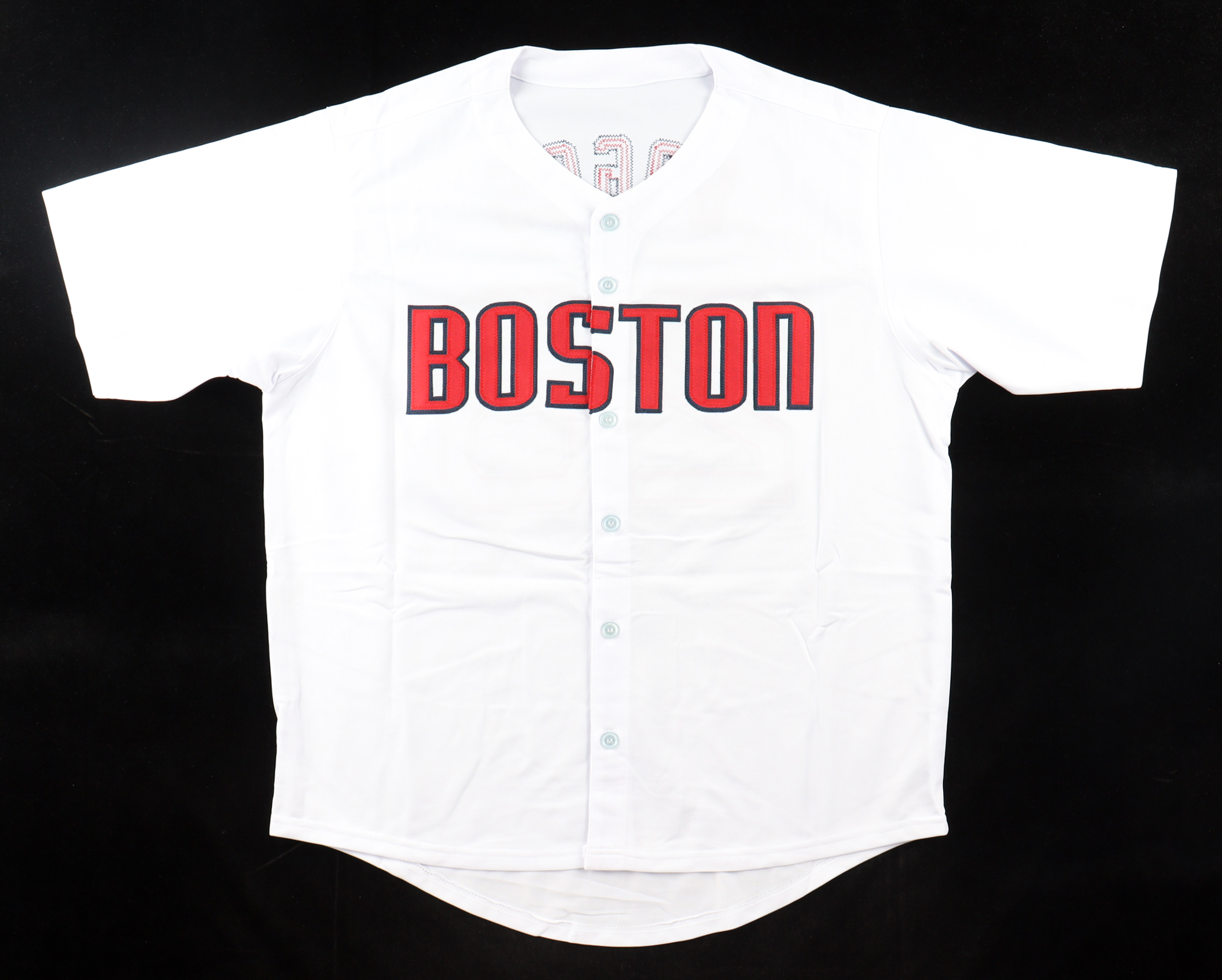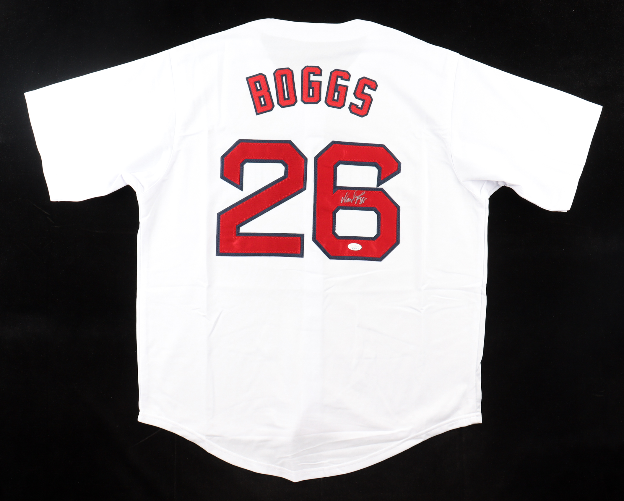 Custom jersey with everything sewn on, size XL. Hand-signed by Wade Boggs (HOF).