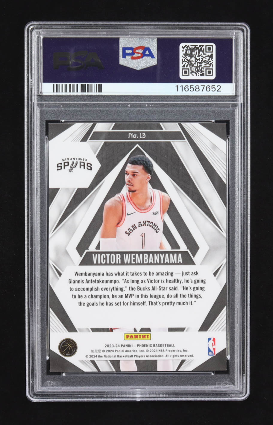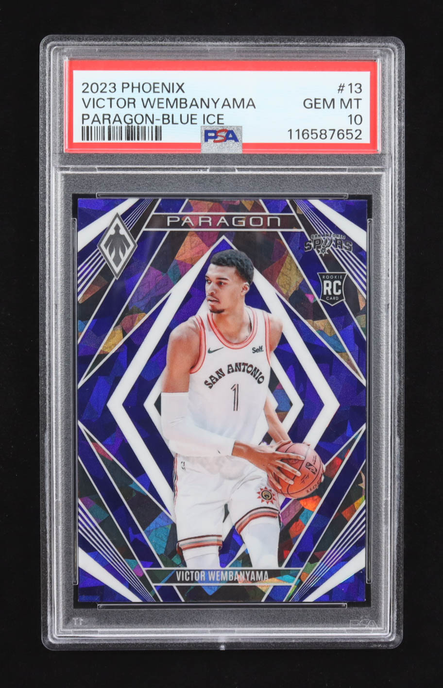 Victor Wembanyama 2023-24 Panini Phoenix Paragon Phoenix Blue Ice #13 RC (PSA 10)