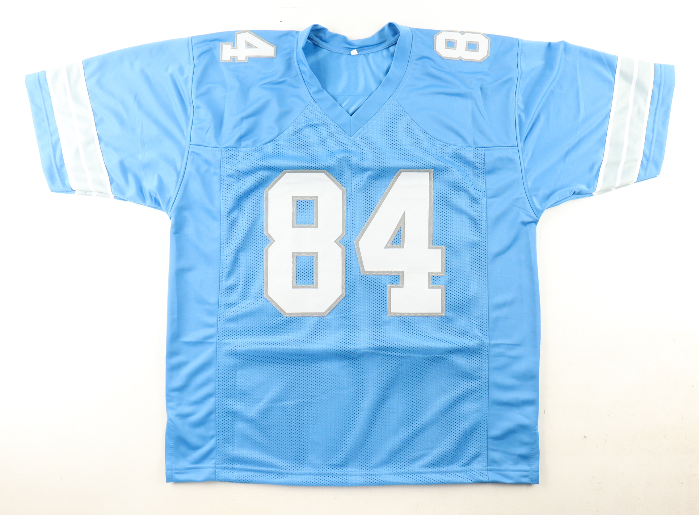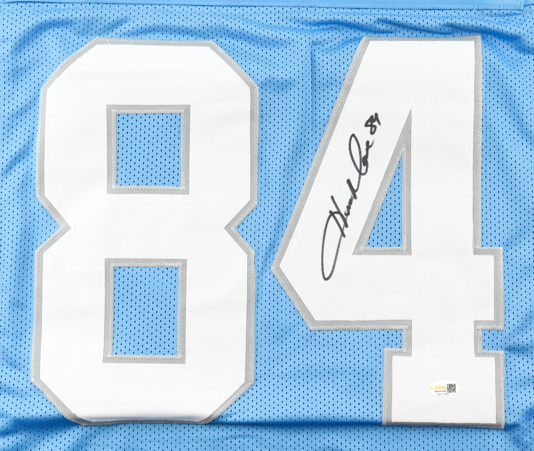 Custom jersey with everything sewn on, size XL. Hand-signed by Herman Moore.