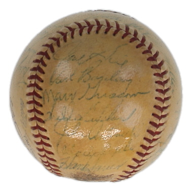 Spalding Official American League baseball. Hand-signed by (30) with Willie Mays, Felipe Alou, Orlando Cepeda, Mike McCormick, Hank Sauer, Bill Rigney and (24) others.Please note that the item and signatures show signs of fading.