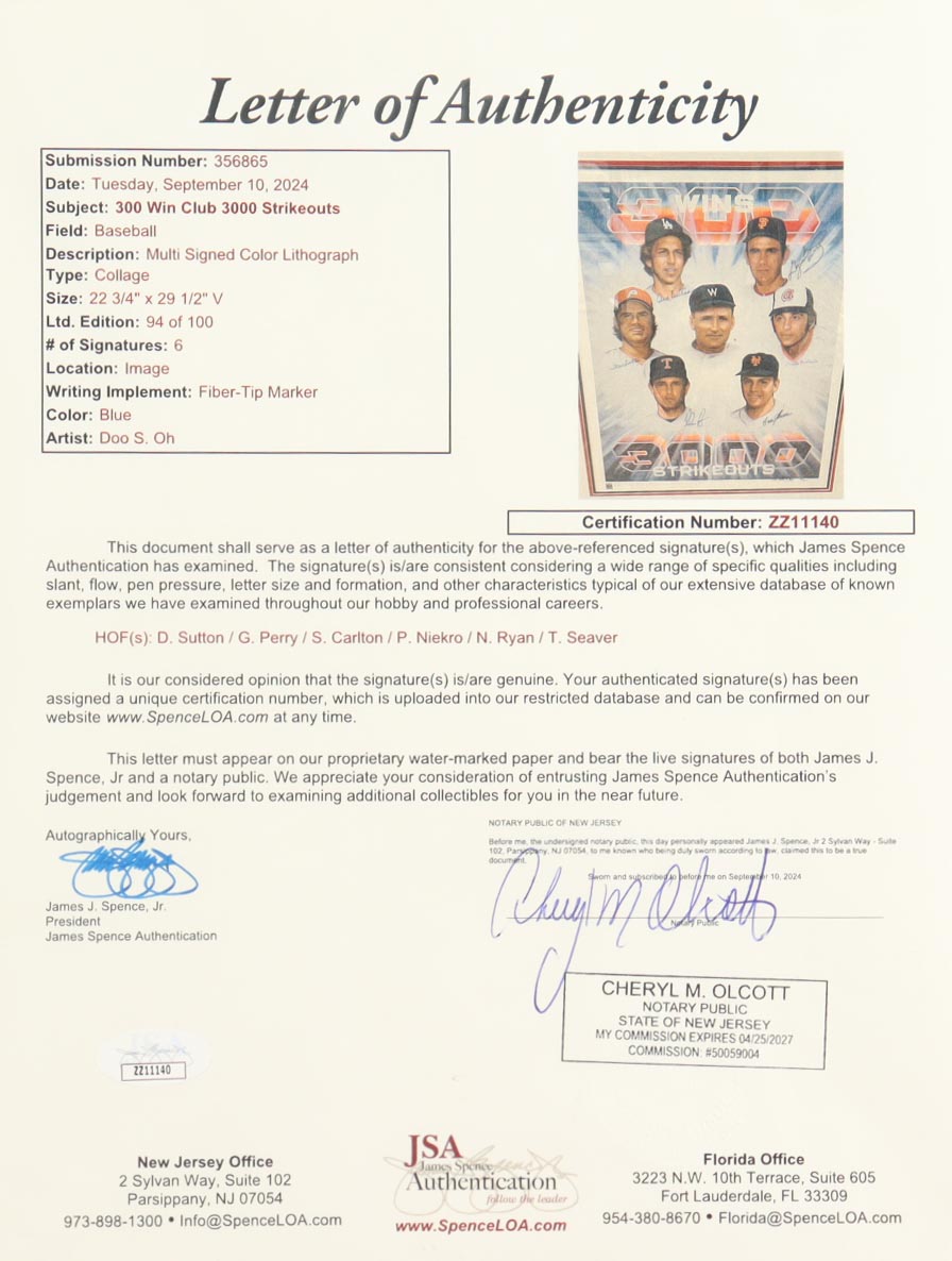 300 Wins/3000 Strikeouts Club | Custom Framed Art Print Signed by (6) with Don Sutton, Gaylord Perry, Steve Carlton (JSA)